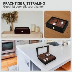 Korting 👍 Confibel Horloge Box Voor Juwelen En Sieraden – 10 Compartimenten Met Kussentjes – Bruin 🥰