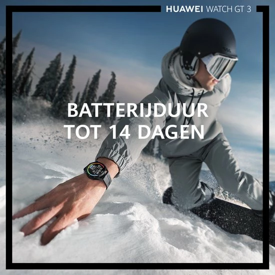 De HUAWEI WATCH GT 3 is verkrijgbaar in verschillende elegante stijlen, met nauwkeurige monitoringopties. Het device bevat o.a een nieuwe hartslagmodule en geeft automatisch de hele dag de zuurstofverzadiging (SpO2) weer. Ook de positiebepaling gebeurt uiterst nauwkeurig. Met een batterijduur tot wel 14 dagen zal het bijhouden van je work-outgegevens nooit worden onderbroken en mis je geen gezondheidscheck. De HUAWEI WATCH GT3 brengt technologie en vormgeving naar een volgend niveau, zodat jij de lat voor jezelf ook hoger kan leggen.