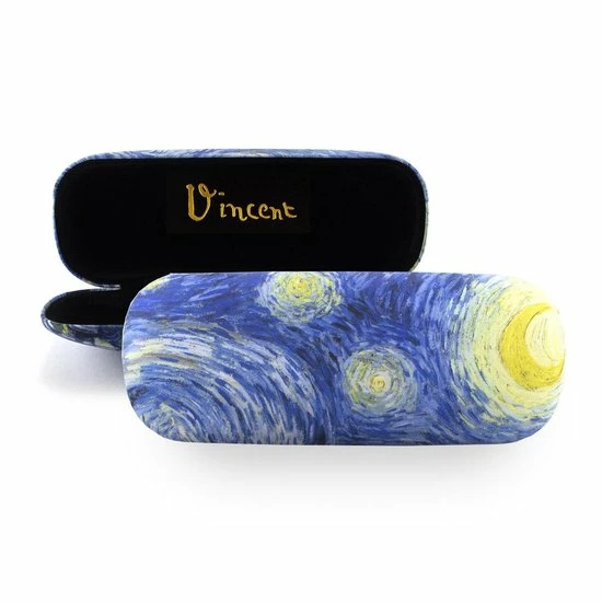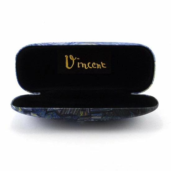 Een stevige brillenkoker voor het veilig opbergen van uw bril. Deze brillenkoker, met zachte microfiber binnen- en buitenzijde, heeft een prachtige afdruk van de Sterrennacht, een van de bekendere werken van meesterschilder Vincent van Gogh. Aan de binnenzijde treft u de signatuur van Vincent van Gogh.