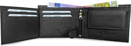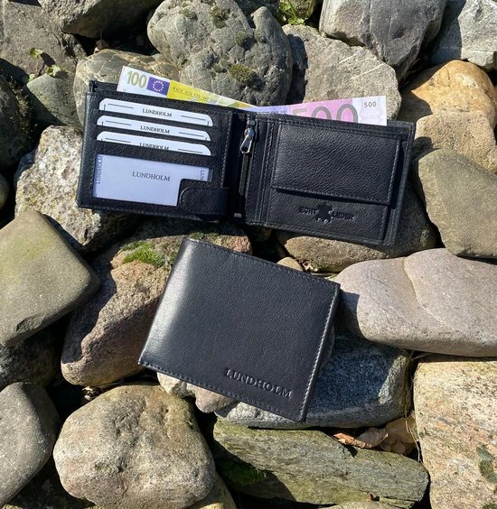 Hoogwaardige heren portemonnee van Lundholm met RFID anti-skim bescherming, handige indeling en veel ruimte voor pasjes en papieren.