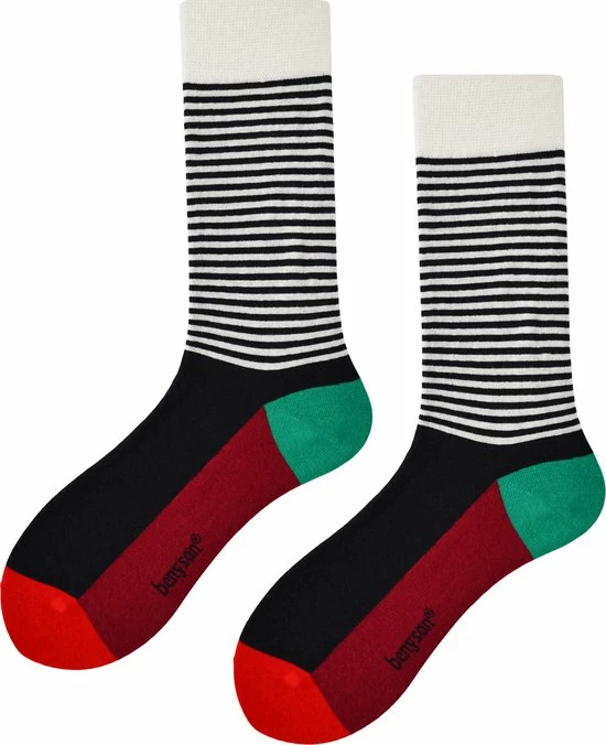 De hipste sokken van dit moment Benyson sokken! De sokken zijn razend populair vanwege hun vrolijke kleuren, orginele leuke prints en hoogwaardige kwaliteit. Deze sokken zijn de ideale sokken voor de eigenzinnige, hippe man en vrouw. De sokken van Benyson zijn unisex en hebben een fijn draagcomfort en zijn van uitstekende kwaliteit.