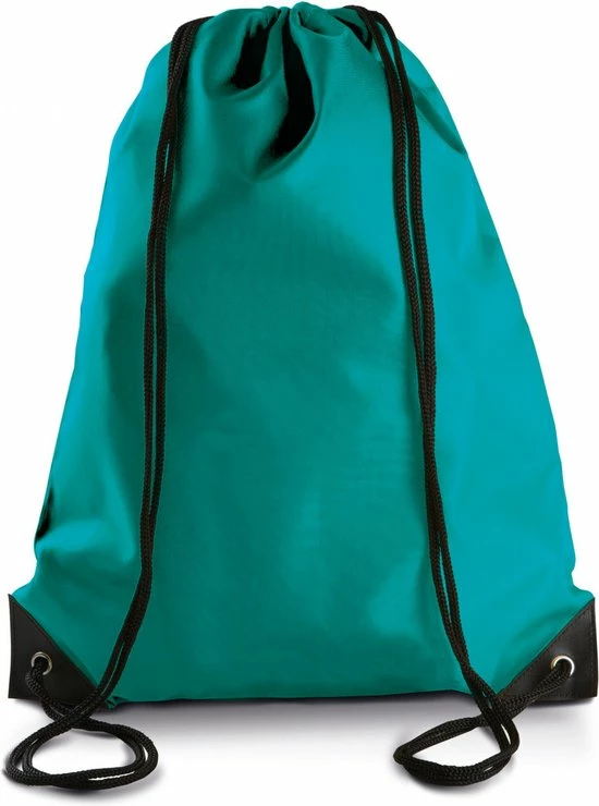 Sport gymtas/draagtas in kleur turquoise blauw met handig rijgkoord 34 x 44 cm van polyester en verstevigde hoeken.