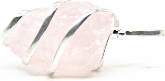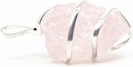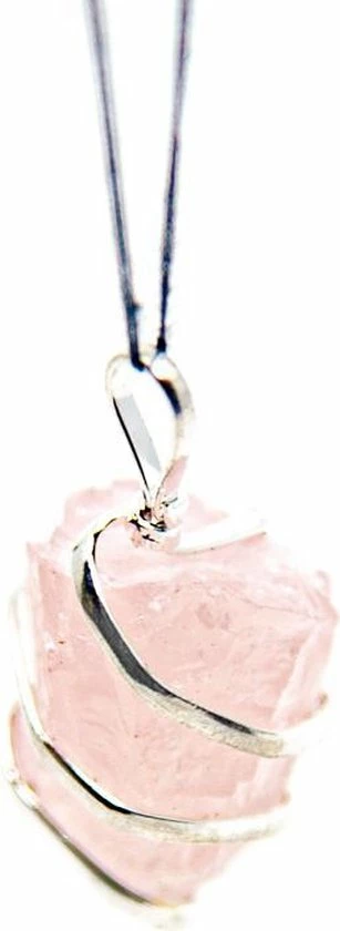 Een hanger met een ruwe rozenkwarts edelsteen van circa 20 ? 30 mm.