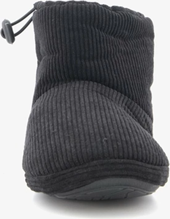 Hoge, zwarte sloffen voor heren. Gemaakt van textiel.
