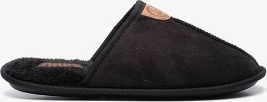 Zwarte heren pantoffels uit de Thu!s collectie. Gemaakt van textiel en een warme voering.