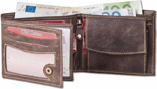 Wild Nature, de naam zegt al genoeg. Deze bruine portemonnee heeft echt een stoere natuurlijke uitstraling. Doordat de portemonnee uitgevoerd is in hoogwaardig leder, is deze extra duurzaam.